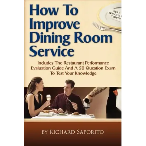 HOW TO IMPROVE DINING ROOM SERVICE is an easy learning manual that explains the basic fundamentals of "Front of the House" customer service quality and efficiency needed in every restaurant dining room. It is a very helpful guide for anyone in the restaurant industry. It doesn't matter if someone is an owner, operator, manager, part of the waitstaff or hosting the front door. HOW TO IMPROVE DINING ROOM SERVICE is written in a way to be understood by everyone. Through this book, readers will get step-by-step instructions explaining how they can improve various elements of their restaurant customer service. In detail, important topics are discussed such as the Front Door and Reservation Desk Duties, Seating Maximization and Efficiency, Dining Room Preparation, Organization, Coordination, Understanding, and Awareness, Traffic Flow Guidelines, Menu Knowledge and Upselling, Staff Scheduling Efficiency, Cross Training, Sanitary Rules, Safety Information and much more..... When readers begin studying HOW TO IMPROVE DINING ROOM SERVICE, they will acquire knowledge from an author who is highly experienced in restaurant service consulting and waiter training. In just a few short pages, readers will obtain useful information derived from several years of restaurant expertise that can be put to use immediately in dining rooms of all sizes and shapes. Best of all, everything is conveyed in a pleasant, easy-to-understand manner. One will not have to sift through a thick book of complex restaurant management terminologies to get to the meat of what's really important in running a restaurant dining room successfully. Additionally, HOW TO IMPROVE DINING ROOM SERVICE includes a special section called the RESTAURANT PERFORMANCE EVALUATION GUIDE. In this section readers answer a series of 60 involved questions to help determine how pleasing their establishment is for the customer. It will help determine specific areas that need special attention when it comes to the "dining service experience." Topics analyzed here are: Restaurant Outside/Inside Appearance, Front Door and Dining Room Appearance, Menu Analysis, Ambiance, Dining/Wait Staff Service, Skills, and Technique throughout the dining experience, Food Preparation and Quality, Service Ending, Payment Handling, Restrooms and much more..... When finished using this unique self-evaluation guide, one will be able to easily pinpoint the strengths and weaknesses in their restaurant operations. From this vantage point, troubleshooting and problem-solving can commence with focused vision and direction. Here are a few comments from pleased restaurant operators...... "Thank you so much Richard. This book has a lot of great organizational tips helping us to elevate our dining room customer service!" ----Orlando Campos, General Manager, Brasilia Grill, Montville, New Jersey "Your book was very interesting, easy to read with many items that we extracted and used for our operations!" ----Marc C. Moulinet, Director of Services, Horseshoe Bay Resort, Marble Falls, Texas "Richard, thanks to your book, I can now display great service in my restaurant!" ----Francis Le Roux, Owner, De Ark Guesthouse, Lydenburg, South Africa "A must read for every restaurant owner, manager, waiter or host." Get this book now!" ----Michael Meyer, Executive Chef and Editor-in-Chief, CuisineArts.com