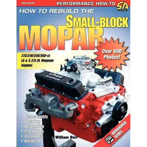 How to Rebuild the Small-Block Mopar is the most comprehensive book on small-block Mopar engines ever released, covering 273, 318, 340, and 360-ci LA engines and 5.2 and 5.9L Magnum V-8s. Author William Burt uses color photos and descriptive text to teach readers the complete rebuild process from removal to break-in.