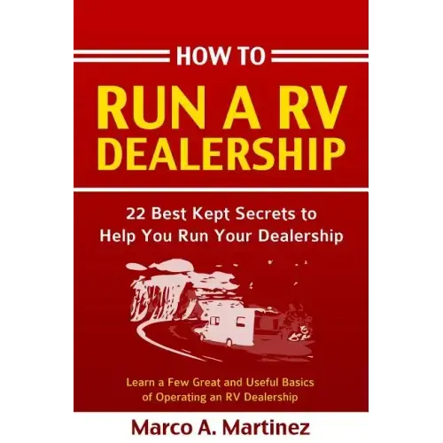 Whether you are just starting out or a seasoned dealership owner, How To Run a RV Dealership will help you manage your dealership, understand cash flow, manage your employees, and more How To Run a RV Dealership is packed full of 22 useful articles written by a seasoned veteran in the RV Industry. In this book, Marco Martinez shares some of his articles that he uses to help RV, Marine, and Automotive Dealers manager their day-to-day operations. These articles cover a large variety of topics that Marco considers as the 'basic essentials' for an RV Dealer.