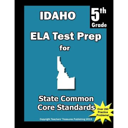 Our 2nd edition Idaho 5th Grade ELA Test Prep for Common Core State Standards is an excellent resource to assess and manage student's understanding of concepts outlined in the Common Core State Standards Initiative. The material emphasized in this book is placed on Reading Literature and Reading Informational Text Common Core Standards. Practice problems in this book involve: explaining what the text says explicitly and when drawing inferences from the text; determining a theme of a story, drama, or poem from details in the text, including how characters in a story or drama respond to challenges; comparing and contrast two or more characters, settings, or events in a story or drama; determining the meaning of words and phrases as they are used in a text; explaining how a series of chapters, scenes, or stanzas fits together to provide the overall structure of a particular story; describing how a narrator's or speaker's point of view influences how events are described; analyzing how visual and multimedia elements contribute to the meaning, tone, or beauty of a text; and comparing and contrasting stories in the same genre. These standards are covered extensively through multiple-choice practice problems. This book contains over 250 practice problems aligned to each Common Core State Standard. In addition the book contains an answer key to practice problems.