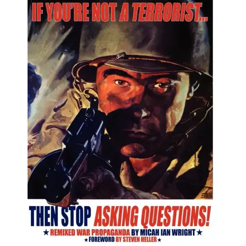 If You're Not a Terrorist... Then Stop Asking Questions is the hilarious follow-up to Micah Ian Wright's hit debut, You Back The Attack We'll Bomb Who We Want Wright creates a stellar send-up of the Administration's War at Home, combining "remixed" full-color World War-era propaganda posters with critical political commentary to deliver a scabrous take on the State of the Union. Taking aim at corporate corruption, the Bush White House, Ashcroftian legislation, embedded reporters, the 2004 presidential elections and super-patriotism, this is a must for art collectors and rabble-rousers both.