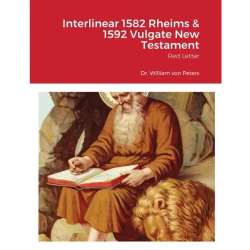This is an interlinear New Testament comprised of the 1582 Rheims and the 1592 Clementine Vulgate. The Rheims is the REAL Rheims, not the Challoner edition by Bp. Challoner falsely sold as the Douay Rheims Bible. The Rheims is Red Letter for the name and words of Christ. It is published in large size both for the serious student of Scripture and also for the average reader who wishes to compare the Latin Vulgate to the English of the REAL Rheims New Testament published by the English Divines in Rheims, France. This is a literal translation of the Vulgate as opposed to various polemical texts which alter the words of Scripture to fit their particular denominational theology.