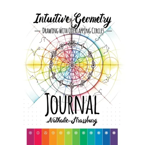 The Intuitive Geometry method is the 8 principles for drawing and designing with overlapping circles. The annual dot matrix journal has 420 pages, contains Intuitive Geometry art, 48 inspirational themes, and color-coded pages for monthly and daily entries.