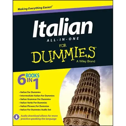 Italian All-in-One For Dummies appeals to those readers looking for a comprehensive, all-encompassing guide to mastering the Italian language. It contains content from all For Dummies Italian language instruction titles, including Italian For Dummies, Intermediate Italian For Dummies, Italian Verbs For Dummies, Italian Phrases For Dummies, Italian Grammar For Dummies, and Italian For Dummies Audio Set.