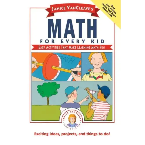 How long is the world's longest earthworm? How tall was a brachiosaurus? What's the average diameter of human hair? What's the circumference of the earth at the equator? Now you can discover the answers to these and other fascinating questions about math. Packed with illustrations, Math for Every Kid uses simple problems and activities to teach you about measurements, fractions, graphs, problem solving, and much more! Using activities that relate math to everyday life, this book will help you feel comfortable with math--right from the start. You'll make a sun clock, create a thermometer from a straw, race a paper boat, grow your own bean plant, and even play a game of ring the bottle. Each of the many problems and activities is broken down into its purpose, a list of materials, step-by-step instructions, expected results, and an easy to understand explanation. Every activity has been pretested and can be performed safely and inexpensively in the classroom or at home. Also available in this series from Janice VanCleave: Astronomy for Every Kid Biology for Every Kid Chemistry for Every Kid Dinosaurs for Every Kid Earth Science for Every Kid Geography for Every Kid Geometry for Every Kid The Human Body for Every Kid Physics for Every Kid