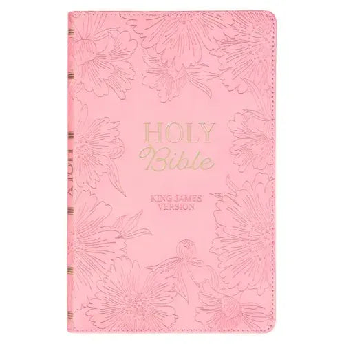 KJV Holy Bible, Gift Edition King James Version, Faux Leather Flexible Cover, Light Pink Floral - Leather