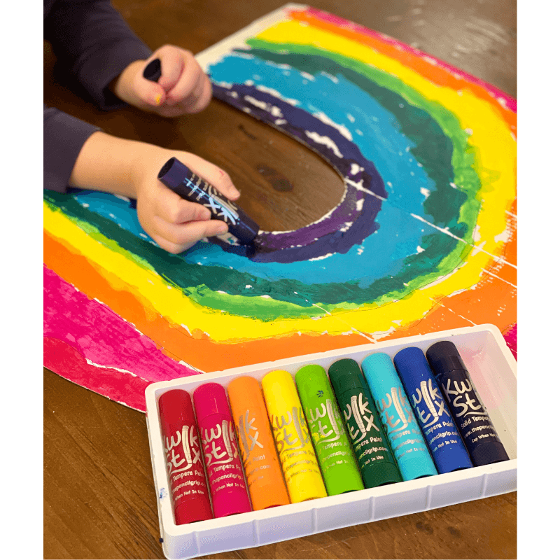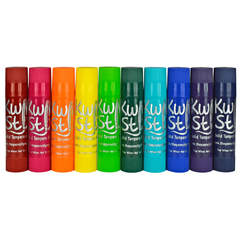 Kwik Stix Tempera Paint sticks take the mess out of painting while keeping all the fun! Simply uncap, twist and paint! Kwik Stix have a fast drying formula that allows them to dry in 90 seconds while still leaving a paint-like finish! No cups, smocks, water or brushes required. Kwik Stix come in assorted vibrant colors with coverage that won't crack. Great on poster paper, cardboard, wood and canvas.