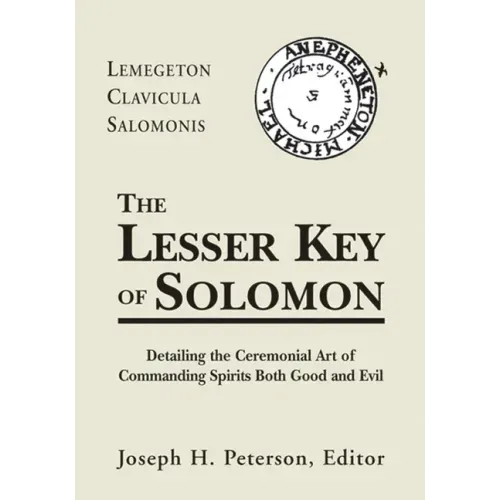 A widely respected scholar and archivist of occult texts, Peterson goes to great length to establish the provenance of each part of The Lessor Key of Solomon, and possible derivative works, including critical analyses of all major variations, utilizing fresh translations of earlier magical texts such as Johann Trithemius's Steganographia, The Archidoxes of Magic by Paracelsus, and newly discovered Hebrew manuscripts of the original Key of Solomon. Abundantly illustrated, Peterson includes reproductions of the original magical circles, tools, and seals of the spirits with variations of certain drawings from various sources and notae missing from earlier editions. This definitive edition of The Lesser Key of Solomon includes:- Goetia--The ritual invocation of evil spirits and Solomons devices for binding them