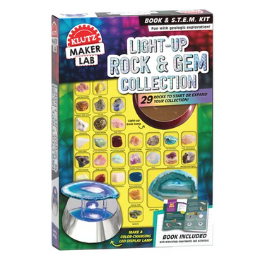 Packed with 29 unique rocks, gems, and minerals, this is the perfect kit to start or expand a rock collection. Build a color-changing light-up display with an agate slice: use it as a lamp, or study the stones up close with the included magnifying glass. Learn fun facts about each rock in the fully colored 32-page book including 6 experiments and activities with easy-to-find ingredients from home.
