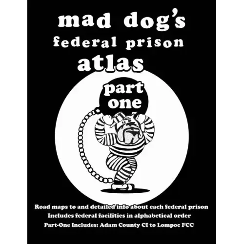 Mad Dog's Federal Prison Atlas Part One contains detailed information about 53 of the Bureau of Prison's facilities. A description of each institution featured offers the following details: - A state location - A metropolitan level map - A street map - Type of facilities - Inmate gender - Security level - Federal region, judicial district - Warden's name - Inmate population - Drug abuse program availability - Description of inmate housing - Geographical location - Directions to the facility - Phone and fax numbers - E-mail address - Physical address (for visits) - Inmate mailing address - Staff mail and shipping addresses - Visitation policies including times and restrictions - Special programs offered to inmates - Area motels with distances and directions from the institution - Closest airports and taxicab services - AM/FM radio signals which can be picked up from the institution Note: Certain information is unavailable for some facilities. Note: Motel and transportation listings (for institutions) are more expansive than those found in any other prison resource. Note: Some maps omit superfluous residential detail in order to make them more legible. All maps focus on the easiest and most direct travel routes to institutions. Federal institutions featured in this book are: Adams County CI Alderson FPC Allenwood FCC Ashland FCI & Camp Atlanta USP & Camp Atwater USP & Camp Bastrop FCI & Camp Beaumont FCC Beckley FCI & Camp Bennettsville FCI & Camp Big Sandy USP & Camp Big Spring CI Big Spring FCI & Camp Brooklyn MDC Bryan FPC Butner FCC California City CI Canaan USP & Camp Carswell FMC & Camp Chicago MCC Cibola County CI Coleman FCI Cumberland FCI Dalby CI Danbury FCI & Camp Devens FMC & Camp Dublin FCI & Camp Duluth FPC Eden CI Edgefield FCI & Camp El Reno FCI & Camp Elkton FCI & Camp Englewood FCI & Camp Estill FCI & Camp Fairton FCI & Camp Florence FCC Forrest City FCC Fort Dix FCI & Camp Fort Worth FCI Gilmer FCI & Camp Greenville FCI & Camp Guaynabo MDC Hazelton USP, Camp, & Secure Female Facility Herlong FCI & Camp Honolulu FDC Houston FDC Jesup FCI & Two Camps La Tuna FCI & Two Camps Leavenworth USP & Camp Lee USP & Camp Lewisburg USP & Camp Lexington FMC & Camp Lompoc FCC