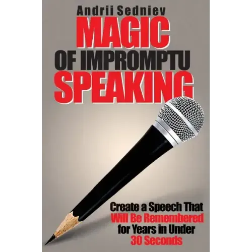 Magic of Impromptu Speaking is a comprehensive, step-by-step system for creating highly effective speeches in under 30 seconds. It is based on research of the most powerful techniques used by winners of impromptu speaking contests, politicians, actors and successful presenters. The book is entertaining to read, has plenty of examples and covers the most effective tools not only from the world of impromptu speaking but also from acting, stand-up comedy, applied psychology and creative thinking.Once you master the system, you will grow immensely as an impromptu public speaker, become a better storyteller in a circle of friends and be more creative in everyday life. Your audience members will think that what you do on stage after such short preparation is pure magic and will recall some of your speeches many years later.