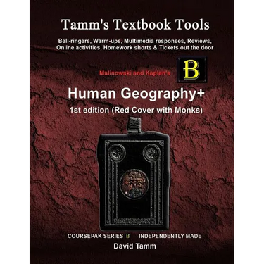 This source book for teachers contains 105 bell-ringers, warm-ups, free-writes, individualized multimedia response forms and online activities for students to do in class or at home. They are aligned with the AP* Human Geography course in general and are organized around the Malinowski & Kaplan 1st edition text in particular. Easy to use and full of entertaining and informative activities that reinforce the curriculum, procedural notes and answer key sections are included. Find TTT on FB, or click author name at the top of this page for all titles in this series.