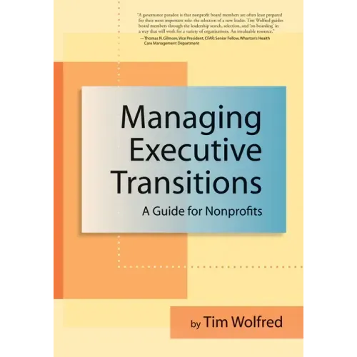 The Essential Guide for Managing Leadership Turnovers A leadership transition can be a time of high vulnerability for a nonprofit organization. On the other hand, an executive turnover offers unique opportunities for renewal and fresh thinking. Managing Executive Transitions shows how this state of transition can give board and staff members a chance to put things back together in new and creative ways--to discard some old pieces and to bring in fresh elements. Nonprofit boards and executive directors will find practical advice on how to manage leadership turnovers in ways that can heighten mission impact while avoiding potential downsides. Author Tim Wolfred recommends a transformational process of three phases: Prepare, Pivot, and Thrive. In the Prepare phase board members, staff, volunteers, and funders engage in an efficient process for updating the agency's strategic directions and crafting a profile of the skills needed in the next executive. In the Pivot phase a search ensues, conducted by a board reinvigorated and excited about the agency's future impact. In the Thrive phase the board engages the newly hired executive as a leadership partner and gives him or her clear performance priorities derived from the strategic directions. Engaging case studies and hands-on tools such as planning agendas, timelines, sample letters, and communication tips will smooth the transition to new executive leadership.