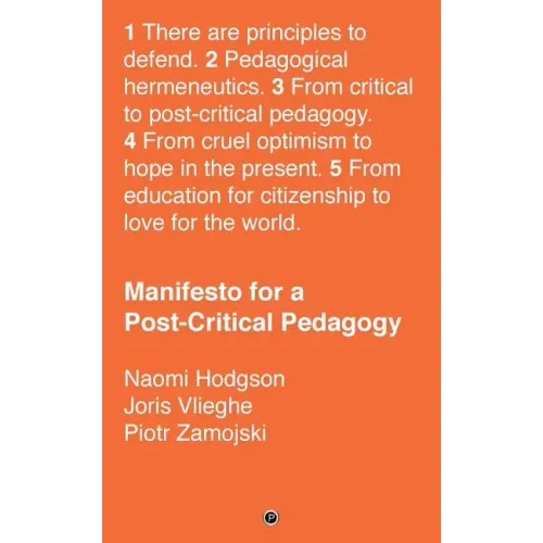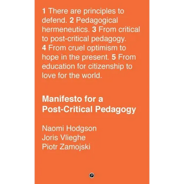 Manifesto for a Post-Critical Pedagogy invites a shift from a critical pedagogy premised on revealing what is wrong with the world and using education to solve it, to an affirmative stance that acknowledges what is educational in our existing practices. It is focused on what we do and what we can do, if we approach education with love for the world and acknowledge that education is based on hope in the present, rather than on optimism for an eternally deferred future.