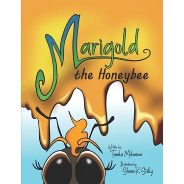 Marigold is a sweet little honeybee who lives in her hive with her mother, the queen, her brothers, the drones and all of her sisters. Her job is to guard the hive and although she is a fearless guard bee, she often daydreams about one day being a forager bee and going out into the magical world of flowers.Finally, Marigold gets to attend forager class where she learns the importance of filling her pollen baskets and the dangers she must avoid. The most important rule she learns is to be back inside the hive before sundown.The following morning, Marigold leaves the hive with her sisters and after searching for what seems like a very long time, she spots a field of beautiful sunflowers. The honeybees are busy filling their pollen baskets when the sky darkens and Marigold ducks under a mushroom to avoid having the rain fall on her wings. While under the mushroom, she meets a beautiful butterfly named Annabella. During their conversation Marigold learns that butterflies live in a cocoon before they are born just like honeybees. Once the rain stops, Marigold leaves her new friend in search of her sisters. Believing she has spotted them, she lands on a carnival ride, then tries to find pollen on sticky cotton candy which she mistakes for flowers. She is shooed away by an annoyed carnival worker and soon realizes the sun is setting and she must hurry back to her hive. She flies very quickly making sure she is notSpotted by any birds and arrives at her hive just as the sun is setting. Marigold's pollen baskets are only half full but when she empties them it is enough polllen to ring a giant bell announcing there would be a pollen party for every honeybee in their hive. At the party, Marigold and her sisters perform the waggle dance to show the other foragers where to find the field of sunflowers. Then everyone laughs as Marigold tells about her carnival ride and the human who shooed her away. After the party, Marigold sleeps peacefully dreaming of what adventures she would have tomorrow.