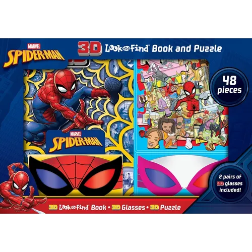 Grab your glasses and swing along with Spider-Man on a 3D adventure! Explore action-packed scenes as you uncover 100+ hidden objects and characters. Then build the 48-piece puzzle for a bonus 3D scene with more "find'ems" to spot! Comes with two pairs of 3D glasses that let you change up your look or play with a friend.