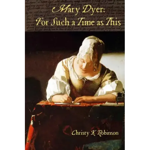In the second of two volumes, Mary Dyer: For Such a Time as This, the Mary and William Dyer return to war-torn England and lay a foundation for liberty that resonates in the 21st century. Why did beautiful, wealthy Mary Dyer deliberately give up her six children, husband, and privileged lifestyle to suffer prison and death on the gallows? Christy K Robinson's two novels on the Dyers are compelling, provocative, and brilliantly written, blending a wealth of historical fact--and creating conversations, correspondence, and motives (fiction)--to produce a thoroughly beautiful work you won't want to put down. The author has reconstructed a forgotten world by researching the culture, religions, and politics of England and America, personal relationships, enemies, and even the events of nature, to discover who these people, the founders of America, were. If you thought you knew Mary Dyer by previous books, Wiki articles, or genealogy pages--think again. New research and brilliant deductions have dispelled myths and mistakes that have been accepted as truth since Mary Dyer's time Make this pair of Dyer novels the subject of your book club discussions, or add them to a reading list for high school and college classes in early-modern English and American history, women's studies, and religious liberty and religious history. Key words: Mary Barrett Dyer, Anne Hutchinson, John Winthrop, John Endecott, Puritan, Quaker, civil disobedience, Great Migration, 17th century, William Dyre, Boston, Rhode Island, England, St Martin-in-the-Fields, Westminster, Raby Castle, Henry Vane, Roger Williams, John Clarke