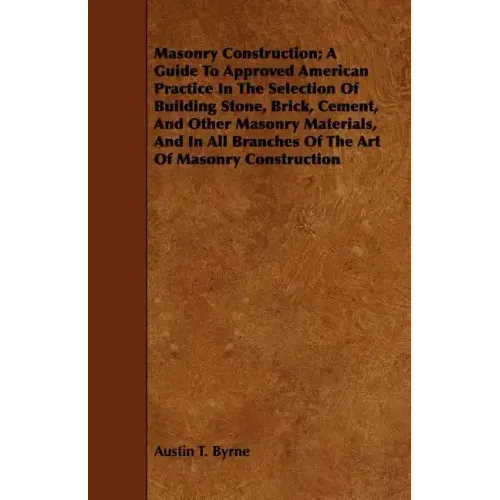 Masonry Construction; A Guide To Approved American Practice In The Selection Of Building Stone, Brick, Cement, And Other Masonry Materials, And In All - Paperback