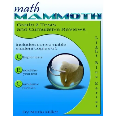 This book has gray-scale interior pages. It includes chapter tests, end-of-year test, and cumulative reviews for Math Mammoth grade 2 complete curriculum.
