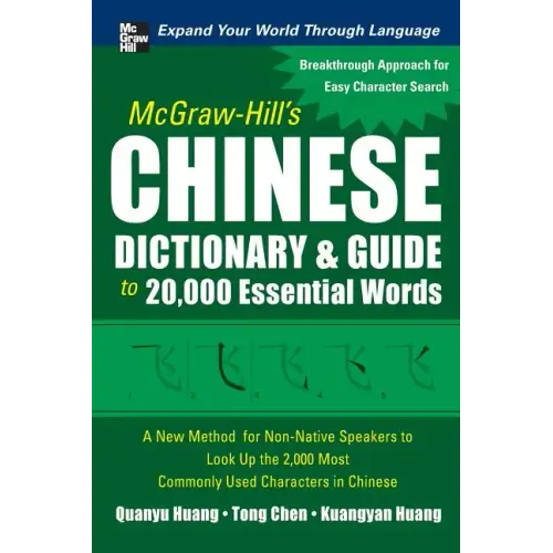 When he surveyed his students, author Quanyu Huang found that only two out of 300 used a Chinese dictionary. Their main obstacle is how existing dictionaries are organized; either a user needs to know the "radical" of a character, how to recognize or count writing strokes, or how a character is pronounced. In McGraw- Hill's Chinese Dictionary and Guide to 20,000 Essential Words the author overcomes this problem with his unique "broken marks" method. Each character is comprised of different marks separated by a physical space or sharp change of direction at the end of a mark. Count these marks, and you can locate the Chinese character you need in less than a minute. This dictionary and guide will also be a perfect complement to your AP Chinese studies.