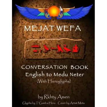 Medu Neter also known as (Ancient Egyptian Hieroglyphs) is no longer a dead language. For the past 20 years an effort has been underway to resurrect it as a living spoken language. The idea first came from the late Dr. Cheikh Anta Diop a leading African historian, scientist and linguist. It was his desire for Medu Neter to one day become a lingua franca for all of Africa. This Mejat Wefa Conversation book is a step toward realizing that goal. Now students and families and can enjoy speaking this ancient language everyday or just use it for rituals or special occasions, just as people once to spoke Latin and Sanskrit, and ancient Hebrew. This book is written with Medu Neter pronunciation and transliteration for easy use. Also in this 2nd addition the Medu Neter (Hieroglyphs) are included so that students can learn to read as well.