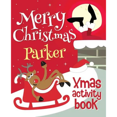 Merry Christmas Parker is a personalized kids activity book, it includes personalized crosswords, word searches, number puzzles, jokes, drawing and coloring
