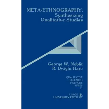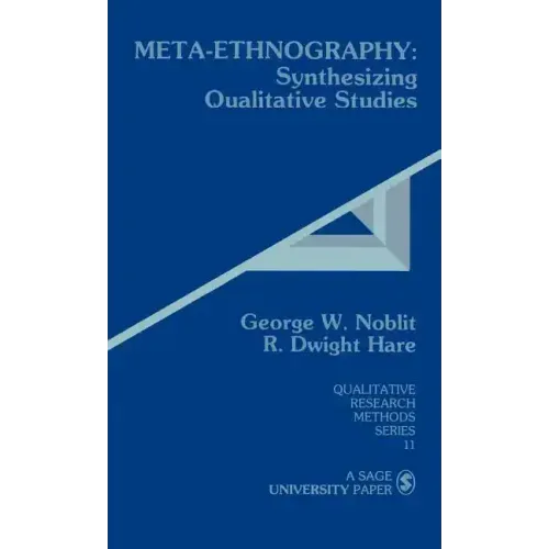 This provocative volume deals with one of the chief criticisms of ethnographic studies, a criticism which centres on their particularism or their insistence on context -- the question is asked: How can these studies be generalized beyond the individual case? Noblit and Hare propose a method -- meta-ethnography -- for synthesizing from qualitative, interpretive studies. They show that ethnographies themselves are interpretive acts, and demonstrate that by translating metaphors and key concepts between ethnographic studies, it is possible to develop a broader interpretive synthesis. Using examples from numerous studies, the authors illuminate how meta-ethnography works, isolate several types of meta-ethnographic study and provide a theoretica