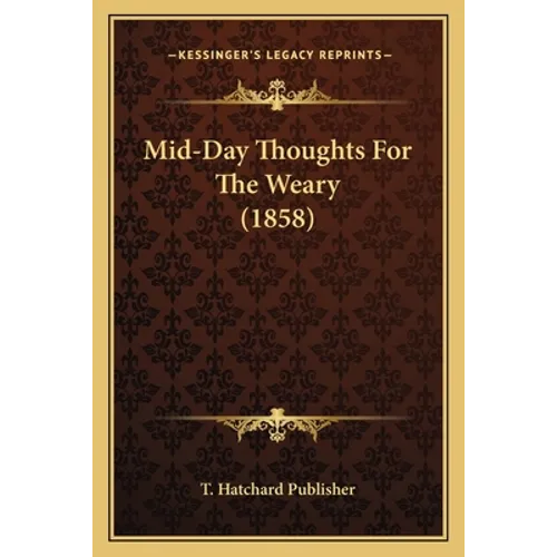 Mid-Day Thoughts For The Weary is a book published in 1858 by T. Hatchard Publisher. The book is a collection of short, uplifting reflections and meditations designed to provide comfort and inspiration to those feeling tired or overwhelmed. The author offers wisdom and encouragement on a variety of topics, including faith, perseverance, and the power of positive thinking. Each chapter is a brief, easy-to-read passage that can be enjoyed in just a few minutes, making it a perfect companion for a quick break in the middle of a busy day. Mid-Day Thoughts For The Weary is a timeless classic that continues to offer solace and hope to readers today.This scarce antiquarian book is a facsimile reprint of the old original and may contain some imperfections such as library marks and notations. Because we believe this work is culturally important, we have made it available as part of our commitment for protecting, preserving, and promoting the world's literature in affordable, high quality, modern editions, that are true to their original work.