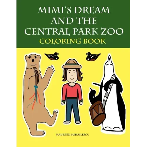 This title is the black and white companion coloring book with illustrations from the children's book "Mimi's Dream and the Central Park Zoo" by Maureen Mihailescu. The day before Mimi visits the Central Park Zoo, she has a dream about the animals in the zoo. In her dream, Mimi finds the animals dancing, playing musical instruments, and doing and talking about the things they love best. "Mimi's Dream and the Central Park Zoo Coloring Book" contains those same playful and fun illustrations based on the real and imaginary animals at the Central Park Zoo. The popular Delacorte clock animals are also part of this coloring book. Children at the Central Park Zoo love to watch these animal statues rotate in circles around the clock. This coloring book provides twenty-nine unique and beautiful illustrations to color and makes an interesting and unique companion to the storybook. It also contains blank pages that encourage children to draw their own animals. It is wonderful for children who love animals and like to visit the zoo. For the complete story and illustrated multicolor book, look for "Mimi's Dream and the Central Park Zoo."