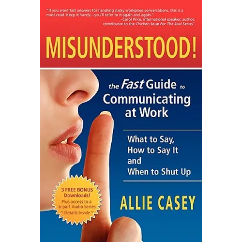 Are You Tired of Being Misunderstood? Gain confidence and credibility, express yourself clearly, negotiate easily, and earn respect from customers, colleagues, co-workers and CEOs. Here is the reference book for handling any workplace communication--from dealing with a bad boss to handling embarrassing conversations. Misunderstood The Fast Guide to Communicating at Work isn't just about the right words it's about the right approach. It's about what Allie Casey calls "The Invitation for Communication" which is both a formula and a mindset. You'll learn how to take a deeper look at yourself as the root cause of misunderstandings and how to make the shift to power communicator. Owner, manager, salesperson, entrepreneur or frustrated worker--you will refer to this easy-to-use guide again and again. You will discover how simple it is to: > Ask the right questions to get the information you need to do your job or get others to do theirs. > Keep your composure in sticky situations. > Negotiate a better deal for yourself or ask for a raise. > Become a responsive listener so you can be heard by others. > Make sure the interpretation of your message matches your intention. > Connect your head to your heart when you open your mouth. > Ask the right questions to get yourself hired. > Clarify your expectations to get the results you want from others. > Develop confidence and know what to say in difficult conversations with co-workers, direct-reports or bosses. > Correct a misunderstanding quickly and easily. > Become an assertive communicator that garners respect. > And much more.