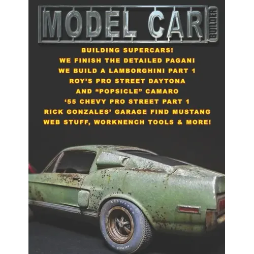 We build some super cars A Lamborghini race car, we finish the Golden Paganini, a supercharged Camaro, and Roy builds a Pro Street Daytona that is going viral on the internet Our cover car is a cool garage find Mustang by Rick Gonzalez Part one on a dual turbocharged Pro Touring '55 Chevy that is going to knock your socks off In Workbench Tools we play with Silly Putty and a cool chassis jig Events coverage is a Pomona model car contest from the year 2000 Welcome to our Covid19 special edition