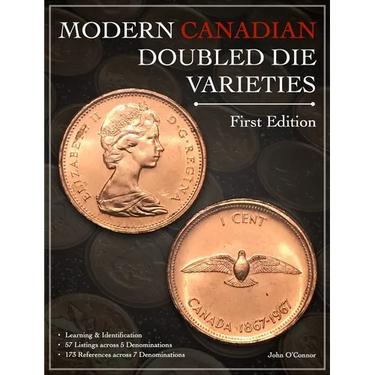 The First Edition of Modern Canadian Doubled Die Varieties is a comprehensive catalogue written by John O'Connor, a numismatist from Kawartha Lakes Ontario. In late 2018 after conversing with like-minded experts and collectors regarding the lack of publications, research, or documentation for this type of die variety, John decided to take on the task of documenting, finding, and occasionally making new discoveries of doubled dies on Canadian coins intended for circulation and proof-like sets.