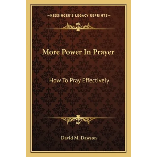 ""More Power In Prayer: How To Pray Effectively"" by David M. Dawson is a comprehensive guide to understanding the importance of prayer and how to make it more effective. The book provides practical advice on how to pray, what to pray for, and how to overcome common obstacles that can hinder prayer. The author draws on his own experiences and insights from the Bible to offer guidance on how to build a strong prayer life that can bring about real change in your life and the lives of those around you. Topics covered in the book include the power of faith, the importance of persistence, the role of fasting, and the benefits of praying with others. The book is written in an accessible and engaging style that will appeal to both new and experienced Christians who are looking to deepen their understanding of prayer and grow in their relationship with God. Overall, ""More Power In Prayer"" is a valuable resource for anyone who wants to learn how to pray more effectively and experience the transformative power of prayer in their life.This scarce antiquarian book is a facsimile reprint of the old original and may contain some imperfections such as library marks and notations. Because we believe this work is culturally important, we have made it available as part of our commitment for protecting, preserving, and promoting the world's literature in affordable, high quality, modern editions, that are true to their original work.