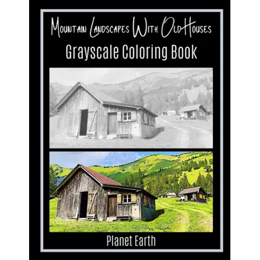 Mountain Landscapes With Old Houses Grayscale Coloring Book - Paperback