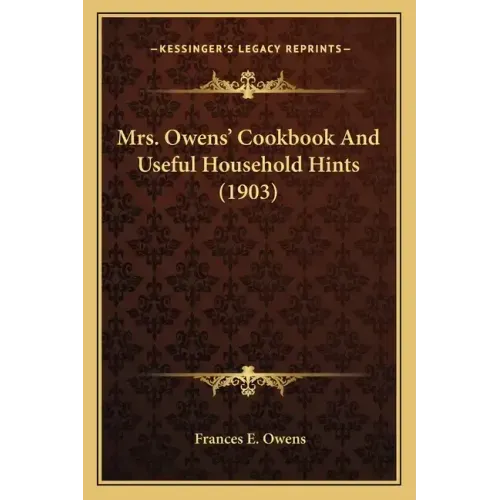 Mrs. Owens' Cookbook and Useful Household Hints (1903) - Paperback