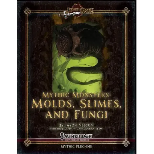 A mythic monstrous manual of the foulest fungus The second volume in our new Mythic Monsters series, Mythic Monsters: Molds, Slimes, and Fungi brings you a dozen and one pestilential horrors and moldering monstrosities to torment your PCs Twelve of your favorite fungi are here, updated for the mythic rules, and when we say updated we mean complete stat blocks, yes, but more than that every fungal creature has its own unique and exciting new mythic abilities, from an mythic ascomoid's puffball avalanche to a mythic fungus queen's battle pods and a mythic mu spore's unstoppable titan. From the vicious vegepygmy to the virulent violet fungus, the seductive fungus queen to the colossal corruption of the mu spore, this product covers CRs from 1 to 26. In addition to a dozen familiar fungal monsters, Mythic Monsters: Molds, Slimes, and Fungi also includes rules for the fungal creature subtype as well as eight mythic fungal hazards, from the familiar green slime and yellow mold to shriekers and azure fungus To top it all off, Mythic Monsters: Molds, Slimes, and Fungi introduces an entirely new 13th mythic fungal creature, the sublime and mysterious fairy ring, a living portal into the realms of the fey that can be a boon or bane to weary and lost travelers. The Mythic Monsters series from Legendary Games brings you dynamic and exciting mechanics alongside evocative and cinematic new abilities that really help creatures live up to their flavor text, whether they are creatures of real-world myth and legend or creatures born out of the RPG tradition itself. These creatures can work just as well in a non-mythic campaign as they do in one that incorporates the full mythic rules, as you can throw them at your jaded players who think they've seen it all or know the standard monster stats as well as you do. That look of surprise and "What was THAT?" will warm any GM's heart - that is what you get with every installment in the Mythic Monsters series from Legendary Games.