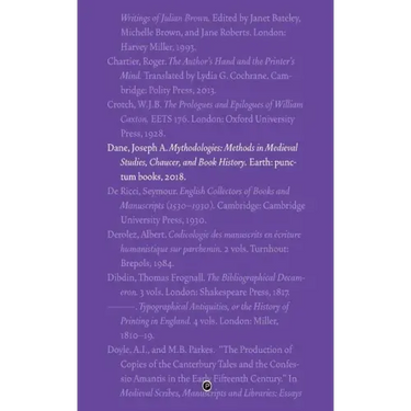 This book has three parts, examining such methods and pseudo-methods of invention in medieval studies, bibliography, and editing. Part One, "Noster Chaucer," looks at examples in Chaucer studies, such as the notion that Chaucer wrote iambic pentameter, and the definition of a canon in Chaucer. "Our" Chaucer has, it seems, little to do with Chaucer himself, and in constructing this entity, Chaucerians are engaged largely in self-validation of their own tradition. Part Two, "Bibliography and Book History," consists of three studies in the field of bibliography: the recent rise in studies of annotations; the implications of presumably neutral terminology in editing, a case-study in cataloguing. Part Three, "Cacophonies: A Bibliographical Rondo," is a series of brief studies extending these critiques to other areas in the humanities. It seems not to matter what we talk about: meter, book history, the sex life of bonobos. In all of these discussions, we see the persistence of error, the intractability of uncritical assumptions, and the dominance of authority over evidence.
