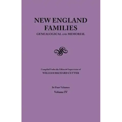 This is one of the richest compendia of family histories in all of New England genealogy. Compiled by William R. Cutter, the former corresponding secretary and historian of the New England Historic Genealogical Society, this four-volume work boasts detailed genealogical and biographical essays on nearly 1,000 venerable New England families. Out of print and hard to locate for many years since its original publication in 1913, "New England Families, Genealogical and Memorial" is now available from Clearfield Company in an affordable paper edition.