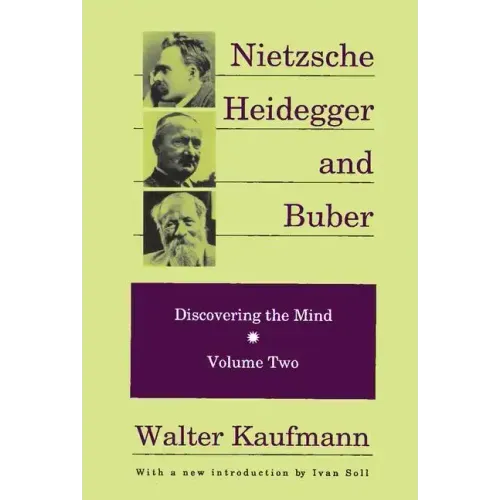 In this second volume of a trilogy that represents a landmark contribution to philosophy, psychology, and intellectual history, Walter Kaufmann has selected three seminal figures of the modem period who have radically altered our understanding of what it is to be human. His interpretations of Nietzsche, Heidegger, and Buber are lively, accessible, and penetrating, and in the best scholarly tradition they challenge and revise accepted views.After an introductory chapter on Kierkegaard and Schopenhauer, with particular attention to the former's views on despair and the latter's on insanity and repression, Kaufmann argues that Nietzsche was the first great depth psychologist and shows how he revolutionized human self-understanding. Nietzsche's psychology, including his fascinating psychology of masks, is discussed fully and expertly.Heidegger's version of existentialism is herein subjected to a devastating attack. After criticizing it, Kaufmann shows how the same mentality finds expression in Heidegger's philosophy and in his now-infamous pro-Nazi writings. Here, as in his portraits of other major thinkers, the author's concern is to show that his subjects are of one piece.