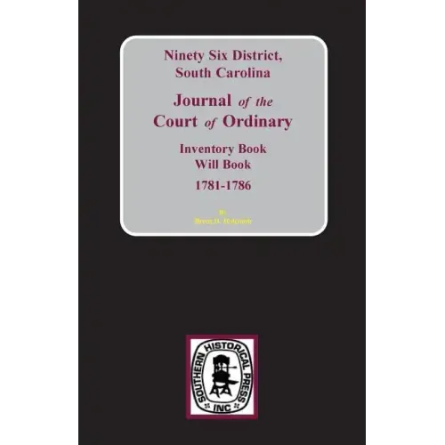 This book contains an exact transcript of the Journal of the Court of Ordinary, which contains several marriage licenses, and estates are mentioned of which original papers are extant. At least one will and some inventories which cannot elsewhere be found are contained here. This volume greatly supplements the well-known book by Pauline Young on Old 96 and Abbeville District, SC Wills & Bonds.