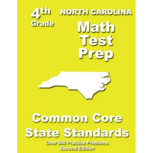 Our 2nd edition North Carolina 4th Grade Math Test Prep for Common Core State Standards is an excellent resource to assess and manage student's understanding of concepts outlined in the Common Core State Standards Initiative. This resource is formatted into three sections: Diagnostic, Practice, and Assessment with multiple choice and open questions in each section. The material covered includes emphasis on representing and solving problems involving using operations with whole numbers to solve problems by representing multiplicative comparisons as multiplicative equations; gaining familiarity with factors and multiples using prime numbers and composite numbers; generating and analyzing patterns using numbers or shapes; understanding multi-digit whole numbers using place value and comparison operations; using place value to understand properties of operations to perform multi-digit arithmetic; understanding of fraction equivalence and ordering with fraction models and comparison operators; building fractions from unit fractions; understanding decimal notation for fractions, and comparing decimal fractions; solving problems involving measurement and conversion of measurements using system of units such as km, m, in, hr, min, sec; representing and interpreting data through shapes, line plots, fractions and/or whole numbers; understanding concepts of geometric angles and measurement of angles. These standards are covered extensively by the practice problems. This book contains over 600 practice problems aligned to each Common Core State Standard. In addition the book contains an answer key to practice problems.