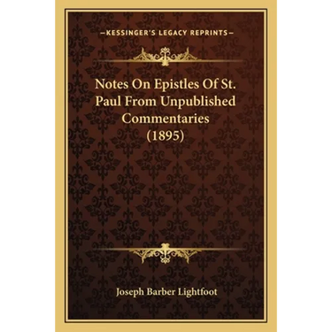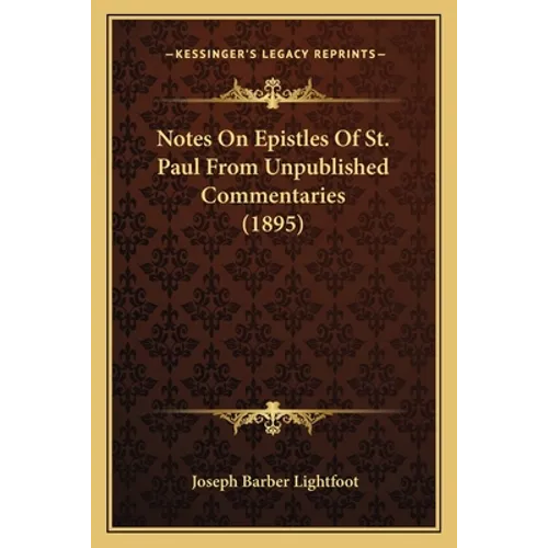 ""Notes On Epistles Of St. Paul From Unpublished Commentaries"" is a book written by Joseph Barber Lightfoot in 1895. The book contains a collection of notes on the epistles of St. Paul, which were taken from unpublished commentaries. Joseph Barber Lightfoot was a prominent theologian and bishop of the Church of England, who is known for his scholarship on the New Testament. The book is divided into two parts. The first part contains notes on the epistles of St. Paul to the Romans and Corinthians. The second part contains notes on the epistles of St. Paul to the Galatians, Ephesians, Philippians, Colossians, and Thessalonians. The notes provide insights into the meaning and context of the epistles, as well as their historical and theological significance. The book is written in a scholarly style, with references to Greek and Latin texts, and is intended for readers with a strong background in theology and biblical studies. It is a valuable resource for scholars and students of the New Testament, as well as for anyone interested in the life and teachings of St. Paul.This scarce antiquarian book is a facsimile reprint of the old original and may contain some imperfections such as library marks and notations. Because we believe this work is culturally important, we have made it available as part of our commitment for protecting, preserving, and promoting the world's literature in affordable, high quality, modern editions, that are true to their original work.