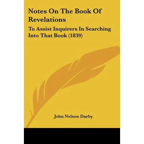 ""Notes on the Book of Revelations: To Assist Inquirers in Searching into That Book"" is a religious text written by John Nelson Darby in 1839. The book is a commentary on the biblical Book of Revelations, which is a prophetic text that describes the end of the world and the second coming of Jesus Christ. Darby's commentary provides insights into the symbolism and meaning of the Book of Revelations, as well as historical and theological context for the text. The book is intended to assist readers in understanding the complex and often enigmatic passages of the Book of Revelations, and to provide guidance for those seeking to interpret the text for themselves. The book is written in a clear and accessible style, and includes detailed explanations of key concepts and themes, as well as references to other biblical texts and commentaries. It is a valuable resource for scholars, theologians, and anyone interested in understanding the complexities of the Book of Revelations and its place within Christian theology.This scarce antiquarian book is a facsimile reprint of the old original and may contain some imperfections such as library marks and notations. Because we believe this work is culturally important, we have made it available as part of our commitment for protecting, preserving, and promoting the world's literature in affordable, high quality, modern editions, that are true to their original work.