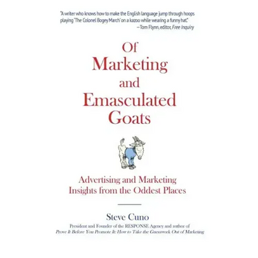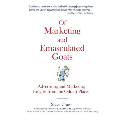 Not many people who stumble upon a historical vignette about a medical quack and a bunch of goats would emerge from the experience with useful insights about marketing. But then, not too many marketing writers are Steve Cuno. Last count, we found only one. Equally at home with branding and direct response, Steve has drawn marketing lessons from birds in hats, a woman who wore an ape costume on a basketball court, a marriage proposal on the Serengeti, a little boy who washed out his own mouth with soap, and people who hide in public restrooms. No wonder that, from the moment his first nationally published article on marketing appeared in 2004, magazine editors began showing up at his door, hounding him for more. Here are the best of Steve's advertising and marketing insights, edited and updated for this volume. It is a collection like no other. The originals appeared in print and online periodicals including Deliver, Skeptical Inquirer, Digital IQ, Adnews, MarketingProfs, BookBusiness, and others. Steve's marketing career spans 40 years. He opened the RESPONSE Agency in 1994.