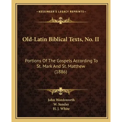 Old-Latin Biblical Texts, No. II: Portions Of The Gospels According To St. Mark And St. Matthew (1886) - Paperback