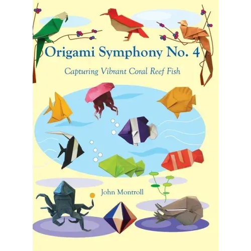 Contained in this work are 37 original models, each a masterpiece by origami master John Montroll. Each model can be folded from a single square using standard origami paper. The first movement features colorful Tropical Birds including a Toucan, Quetzal, and Parrot. The second movement presents a dozen colorful Coral Reef Fish, half of which have stripes. Fish include a Butterflyfish, a Clownfish, Moorish Idol and more. Deltahedra with duo-colored Octahedra fill the third movement. The complex Sea Invertebrates of the fourth movement include an Octopus, Squid, and Jellyfish. All are of varying levels of difficulty and structured as a symphony in four movements.