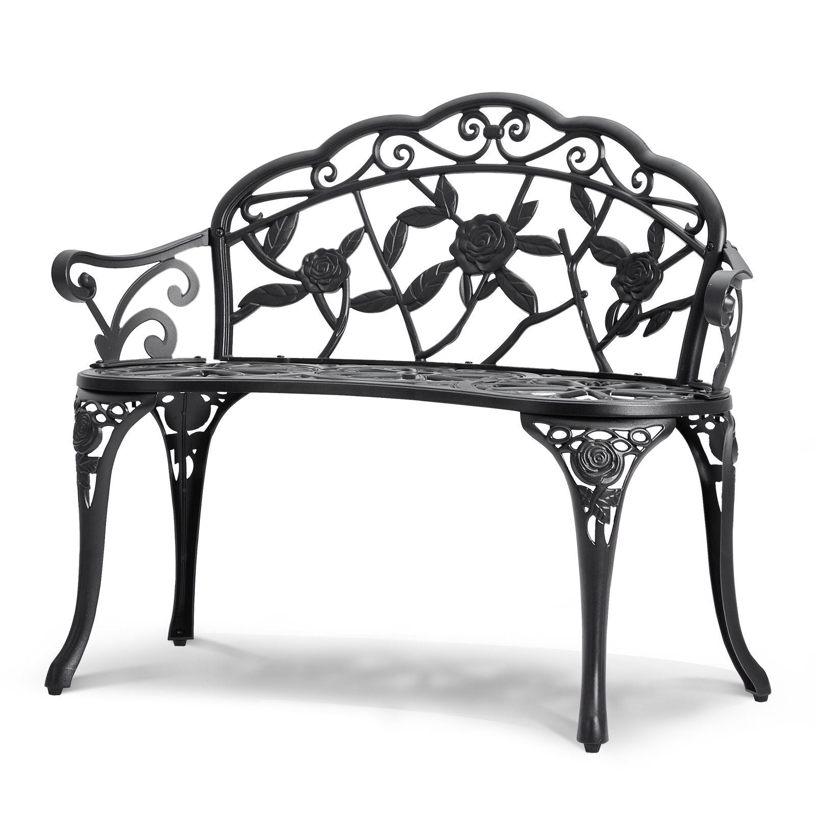 The intricately designed floral pattern on the backrest adds a touch of natural beauty to the outdoor garden bench. Perfect for gardens, parks, patios, or porches, our bench provides a comfortable resting spot for you, your family, and friends to share wonderful moments.