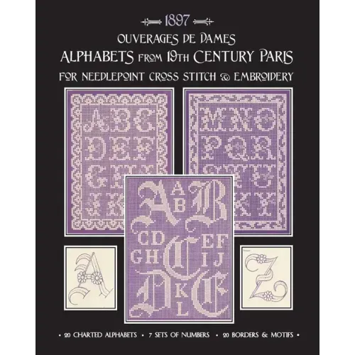 "Ouverages de Dames: Alphabets from 19th Century Paris" is a collection of pages reproduced from antique needlework booklets in my private collection. 40 pages of patterns, plus basic counted thread embroidery stitch techniques and a page of reproducible graph paper to aid you in creating your own designs.