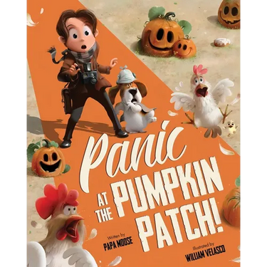 Join Papa Moose and William Velasco, the award-winning team behind Lou the Big Horned Rhino, for a delightful Halloween mystery. With clever clues, amazing illustrations and wonderful read (and shout!) along rhymes, Panic at the Pumpkin Patch is sure to be a holiday classic.