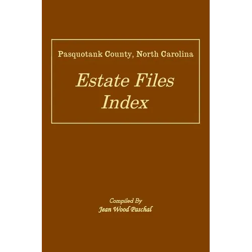 This Pasquotank County Index is the fifth volume in a series of indexes for the loose County Estate Record Files that exist for the inhabitants who died in northeastern North Carolina before 1945. One of the most useful resources for genealogical research on a specific ancestor and their immediate family is the discovery of his or her estate papers. Unfortunately, finding the records for an ancestor is not always easy to accomplish. If a genealogical researcher does not already know where their ancestor was living before his or her death, isolating an ancestor's estate records may be challenging. The county boundaries changed several times during the early years of the Colony's or State's existence. Depending on the approximate time when a death may have occurred, genealogical researchers may need to examine the estate records for several different counties in order to find the one associated with their ancestor. The names in this index are arranged alphabetically by surname using the exact spelling recorded on the original files at the North Carolina State Archives. Also included in this volume is any additional information written on the individual estate file folders as well as a cross index for the estate files that listed multiple names.